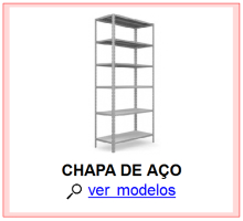 Estantes de metal, linha completa. Modelo padrão de chapa de aço, e modelos reforçados, com fino acabamento.